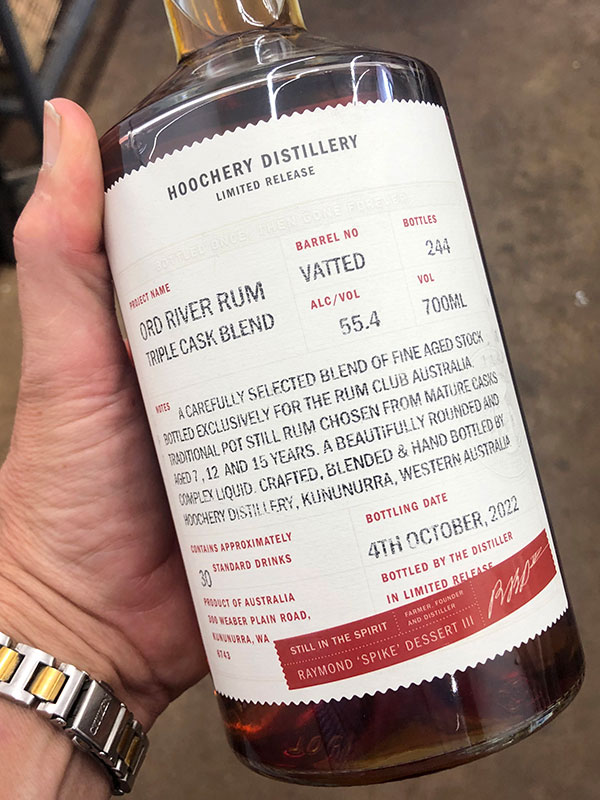 Hoochery Ord River Rum Triple Cask Blend First Release is a single cask limited release bottled exclusively for The Rum Club Australia.